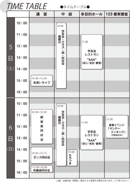 バドミントン同好会 | 焼きそば | 中庭 | ||