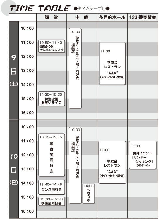 特別企画 | お笑いライブ(9日のみ) | 講堂 | ||