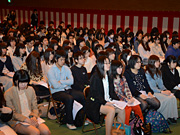 平成25年4月19日(金)、平成25年度新入生歓迎会が行われました。東京医科歯科大学名誉教授の原諭吉氏より「食と医療とエネルギー代謝学」と題した特別講演があり、新入生は真剣に聴講していました。また、豪華賞品が当たる抽選会も行われ大いに盛り上がりました。