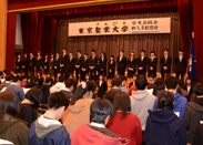 平成27年4月23日(木)、平成27年度新入生歓迎会が行われました。葛飾区健康部長(葛飾区保健所長兼務) 中西 好子氏による「食と公衆衛生」と題した特別講演があり、新入生は真剣に聴講していました。また、豪華賞品が当たる抽選会も行われ大いに盛り上がりました。