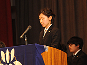 始めに、田所 忠弘学長、荒木 裕子学部長(学友会顧問)、学友会会長 二階堂 紗月(2017NB19)から挨拶をいただきました。