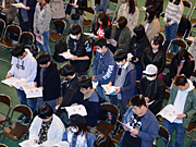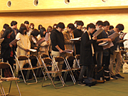 総会の後、わたなべ記念館にて学友会 部・同好会説明会が行われました。各部・同好会は新入生の勧誘の為、熱心な説明とアピールを行いました。