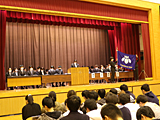 第2部新入生歓迎会を実施後、第3部として部・同好会紹介と学友会抽選会を実施いたしました。新型コロナウイルス感染拡大の影響で部・同好会の紹介についても対面で行う事が、3年ぶりの開催となり、各部・同好会は新入生に向けた熱心な説明とアピールを行いました。