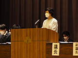 新会長からの挨拶では、「学業はもちろんのこと、全学生の学生生活が楽しく送れるように全力で取り組んでいきたい」と述べられました。学友会顧問からも新入生に向けたメッセージをいただきました。大学の校訓や校歌の紹介を行い、総会は終了いたしました。