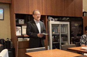 会は荒木副会長・幹事の挨拶で始まり、松崎副会長による乾杯の挨拶がされ、川口シェフより、料理や食べ方の説明をして頂きました。